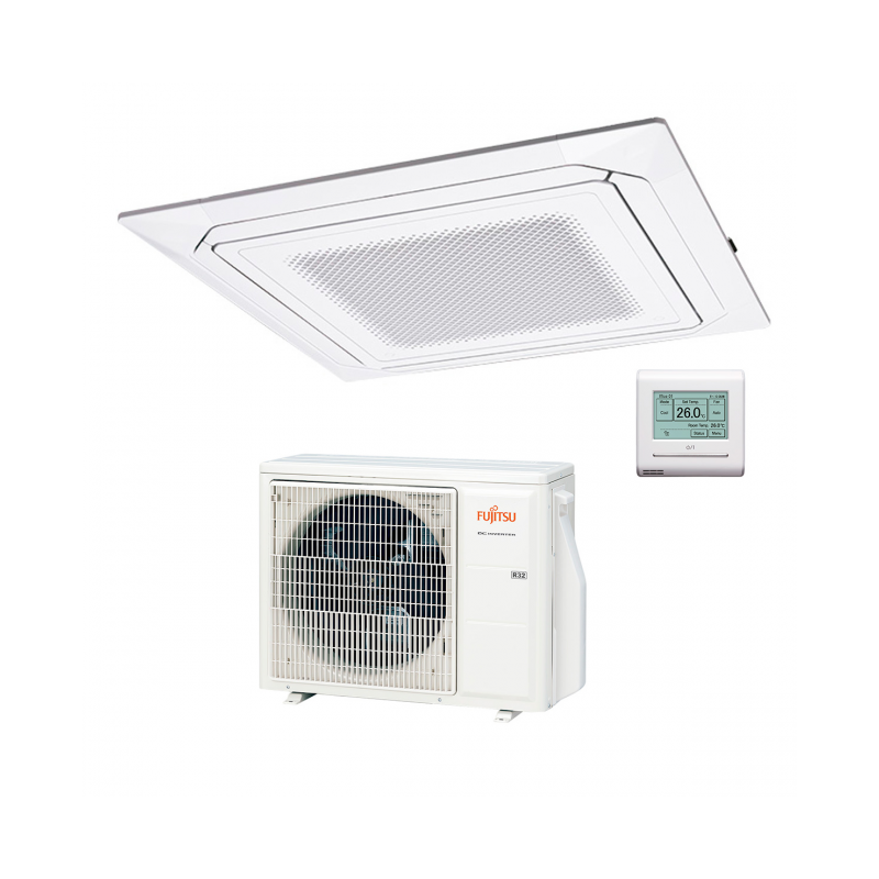 Atlantic Cassette 3D AIRFLOW 800x800 AUXG36KRLB. Ensemble comprend l'unité extérieure :AOYG36KBTB et l'unité intérieure : AUXG36KRLB. Puissance : 9,5 kW froid / 10,80 kW chaud. Nouveau gaz réfrigérant R32. Télécommande infrarouge incluse. Coloris blanc. Classe énergétique A++/A+.